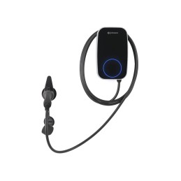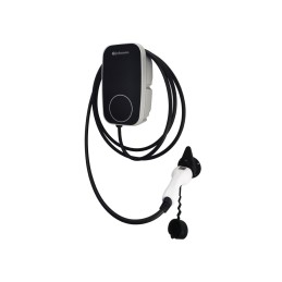 Cargador inteligente para vehículos eléctricos o híbridos enchufables. Conector tipo 2. Tensión de salida 22 Amperios. Máxima a 32 Amperios. Potencia nominal de 7.4 kW. Protección IP65 en carcasa e IP54 en conector.